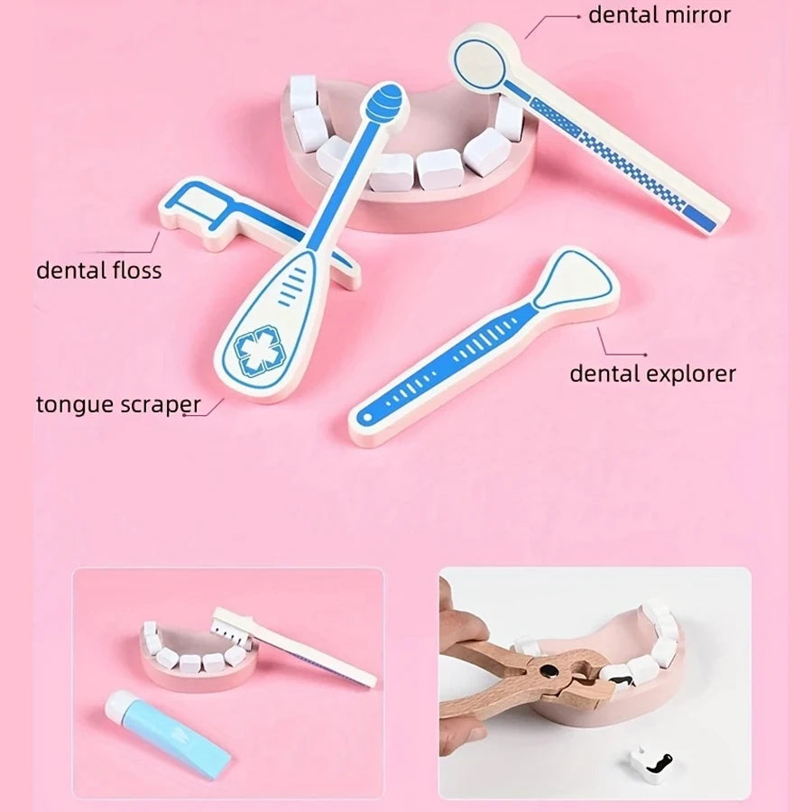 Includes a wooden stethoscope, thermometer, syringe, medicine bottles, bandages, otoscope, reflex hammer, clipboard, and a stylish doctor’s bag — all made from smooth, durable, eco-friendly wood with non-toxic paints.