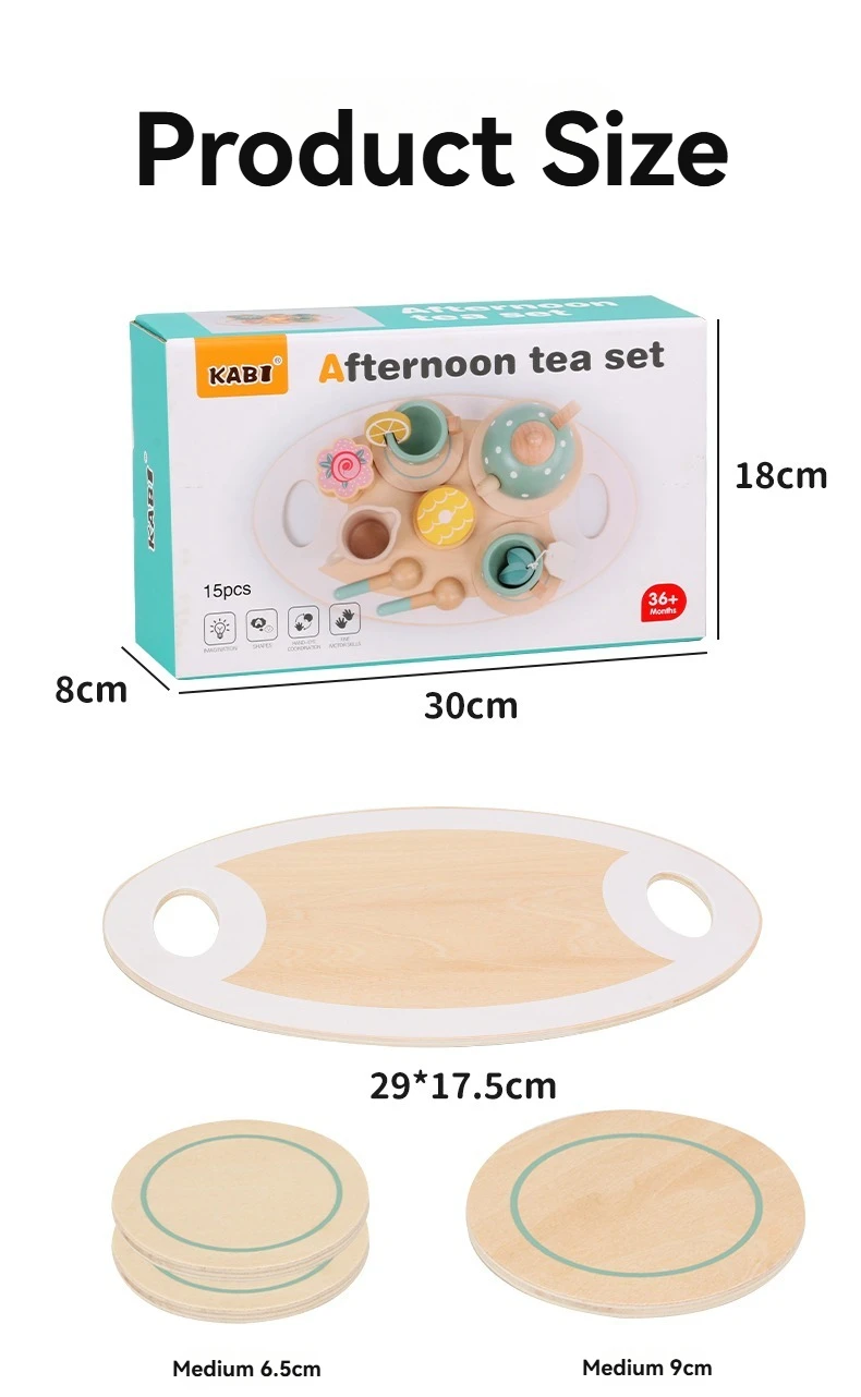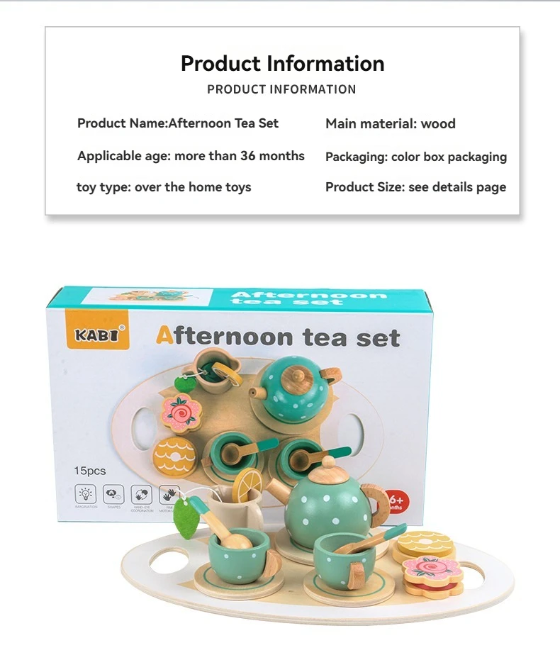 Wooden Children Simulation Afternoon Tea Set Toy Pretend Play Food Learning Role Play Game Early Educational Toys for Toddlers G SPECIFIKĀCIJAS