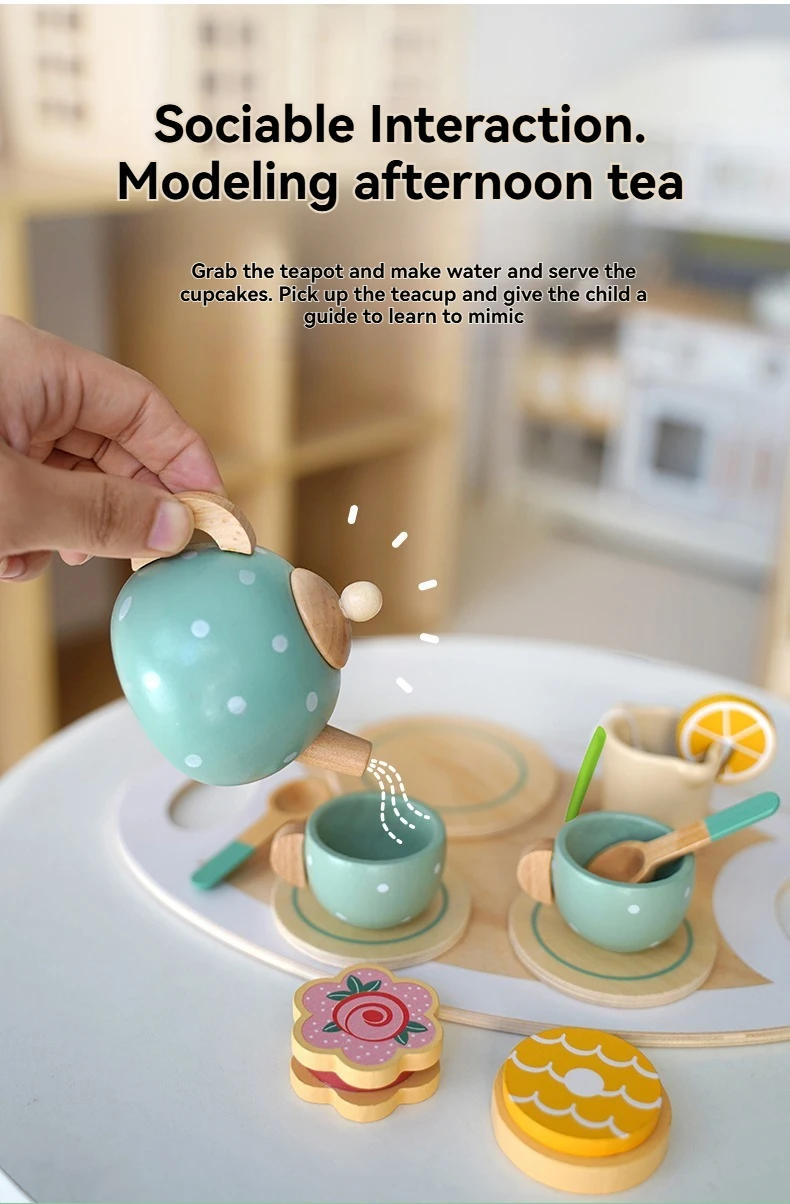 Wooden Children Simulation Afternoon Tea Set Toy.